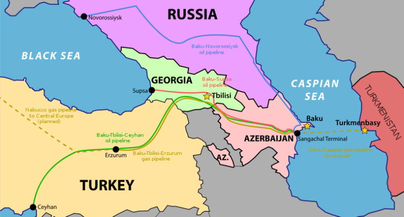 以前コーカサス地域では内戦が勃発していた。そのため、治安が不安定なコーカサスを通るルートではなくロシア経由のパイプラインが活躍していた。しかし、最近では、ロシアがエネルギーを独占する傾向があり、その事態を抑止したいアメリカ、東欧がコーカサスを支援し、コーカサス地域経由のパイプラインが開通し始めている。