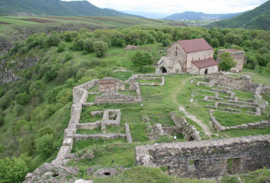 トビリシから約16キロ離れたところにある12世紀創建の修道院。外壁には素晴らしい装飾が見られ、内部にはギオルギ3世、タマル王、ギオルギ4世のフレスコ画がある。 |